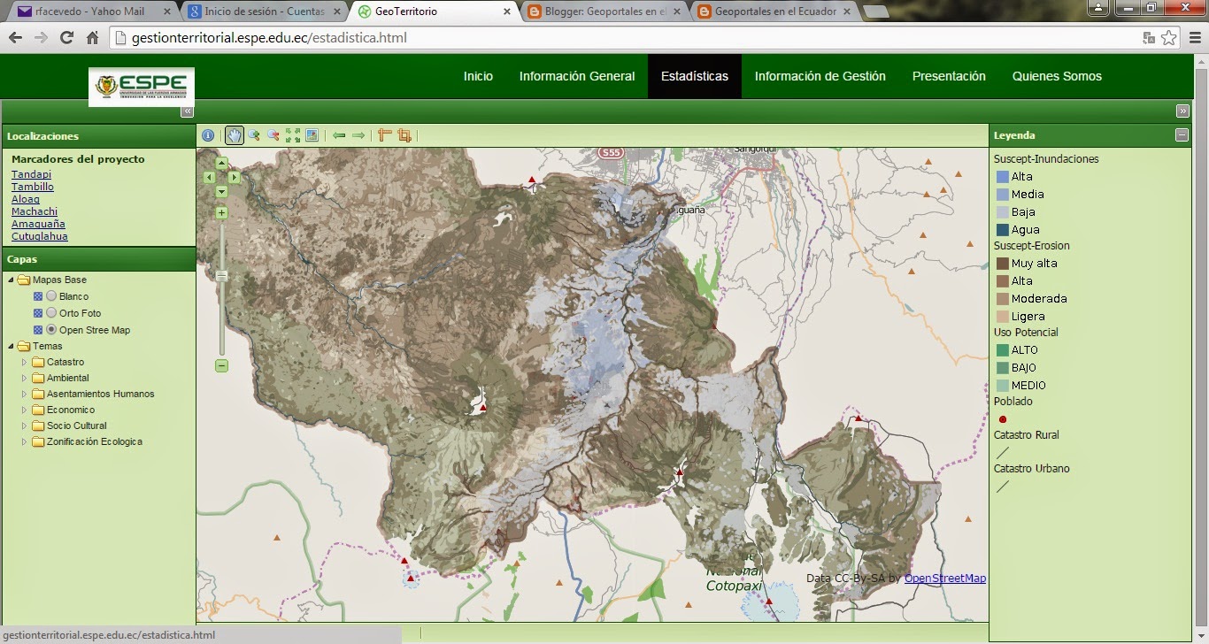 Saludos, invito a todos a ver el Sistema de Gestión Territorial que se ha presentado el día de hoy en la Universidad de Fuerzas Armadas del Ecuador, lo he desarrollado con tecnología Open Source.